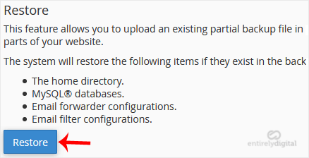 You can easily restore a cPanel partial backup. Please, note that restoring such a backup will overwrite your existing data.
