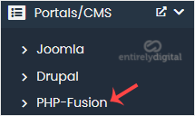 4. On the left side, locate the Portal/CMS category. Click on it and then on the PHP-Fusion link that appears.