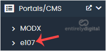 4. On the left side, locate the Portal/CMS category. Click on it and then on the e107 link that appears.