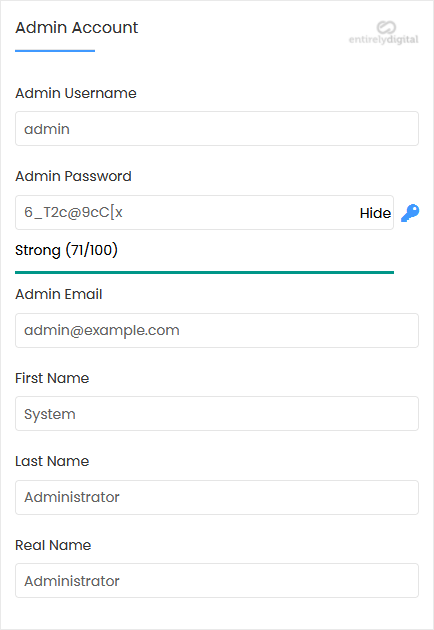 • Admin Username: Your new GRAV username (for security reasons, do not use the administrator or the admin username).