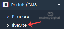 4. On the left side, locate the Portal/CMS category. Click on it and then on the liveSite link that appears.