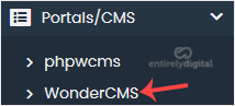 4. On the left side, locate the Portal/CMS category. Click on it and then on the WonderCMS link that appears.